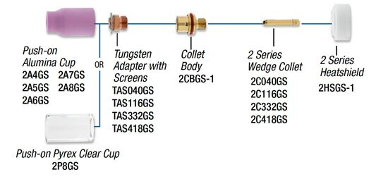 Verwenden Sie diese Umrüstkits und sparen Sie bis zu 40 % des Schutzgasverbrauchs sowie Geld für Ersatzteile. Bietet eine bessere Gasabdeckung im Vergleich zu Standard-Spannhülsengehäusen. Der Wolfram-Überstand kann bis zum Sechsfachen des Elektrodendurchmessers betragen. Klare Pyrex- oder Aluminiumoxid-Aufsteckdüsen erhältlich. Verbessert die Sichtbarkeit. Günstigere Ersatzteile als bei Standard-Gaslinsen. Passt auf die meisten Standard-Brennerkörper mit Silikongummiisolierung. Austauschbarer Siebadapter.